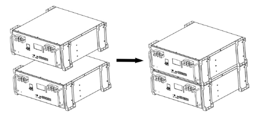 2 : After installation the battery pack stacking brackets, place the bottom battery packs on a flat ground and stack them in sequence as below figure.